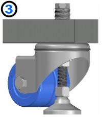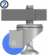 The adjustable height leveling caster allows the height of equipment to be adjusted on the caster in addition to the leveler. This is particularly useful in applications where one piece of equipment must dock to another. Standard models have 1.00+ in. (25+ mm) of adjustability at the recommended insertion length (the length of thread engagement). Levelers for this caster are sold separately. |