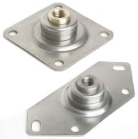 Our industrial Leveling Mounts facilitate the proper installation of a leveling component on tubular steel frames or those made from aluminum extrusions. The corner baseplate mounting option allows the leveler stud to come out on the inside frame corner so it can be adjusted and secured from above. With one set of holes on a frame, it is now possible to install a caster, leveler, or a leveling caster. |